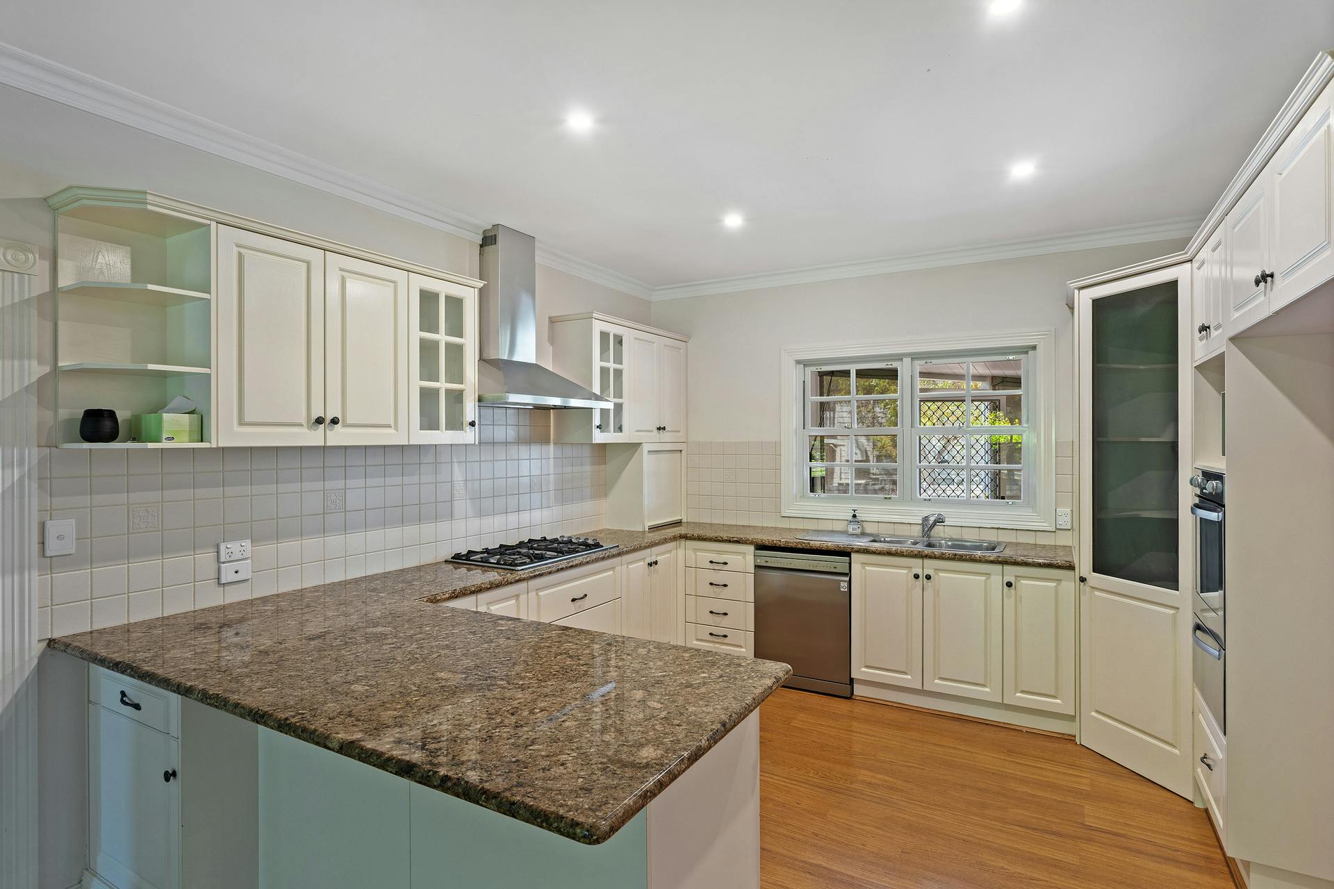 Abundant cupboard storage, stainless-steel dishwasher, electric oven, and a 5-burner stainless-steel gas cooktop with matching rangehood make this kitchen ideal for family living and entertaining.