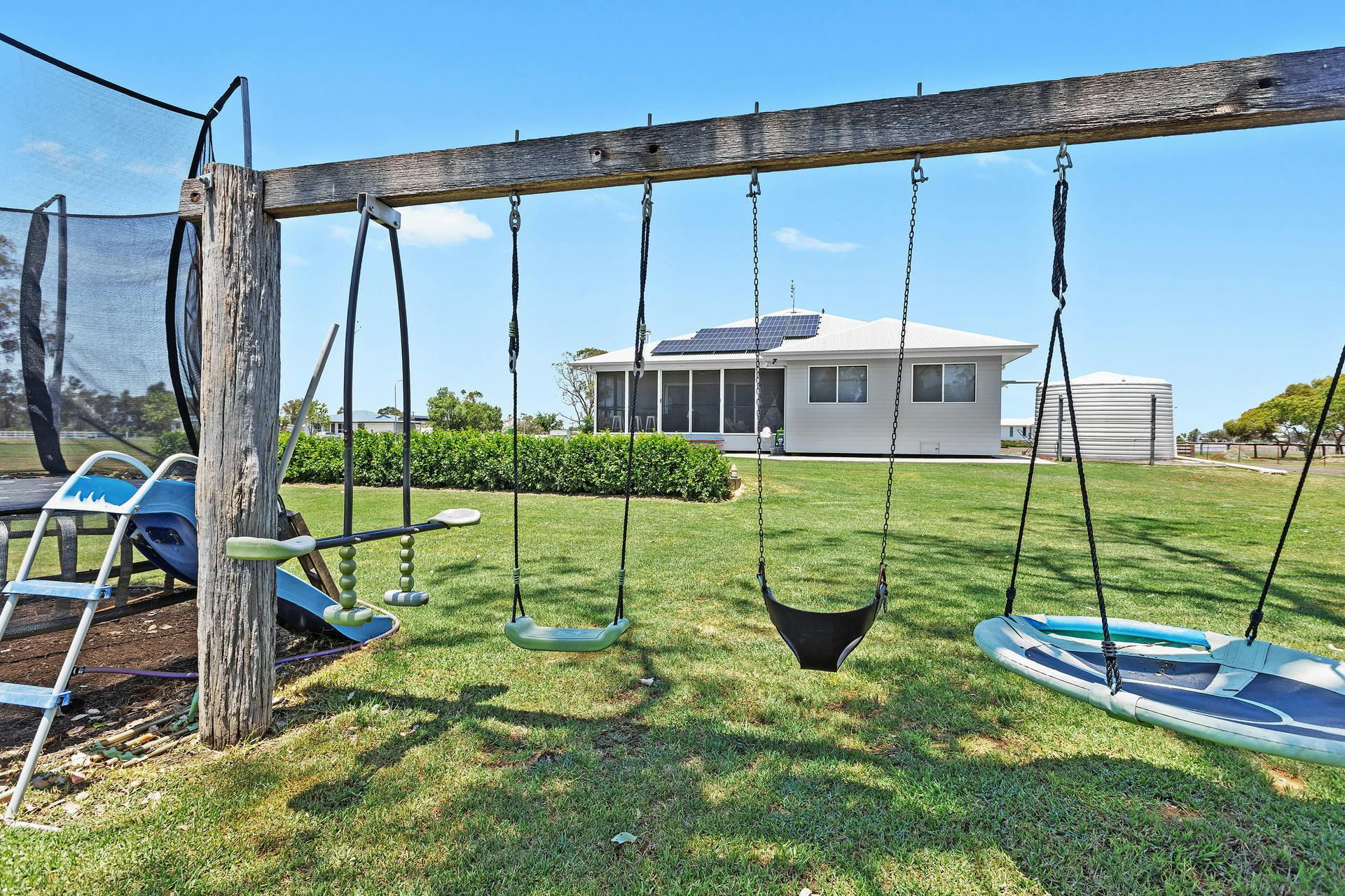 - Kids' dream backyard with swing set and plenty of space for a game of footy