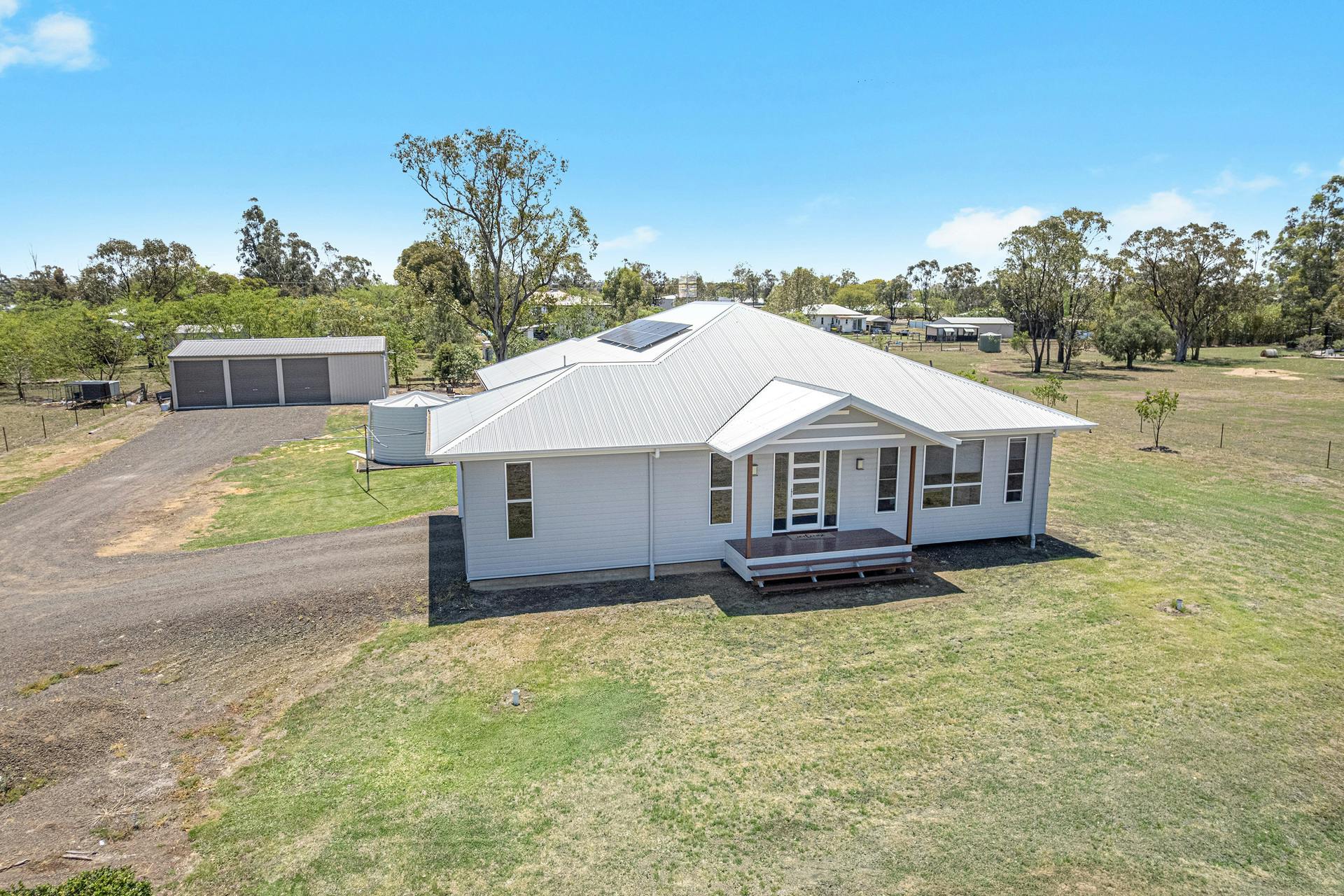 Welcome to this bright, open, and beautifully presented family home in one of Dalby's most Family Friendly areas, surrounded by quality new properties. Built in 2021 by a trusted local builder, this stunning pier and beam home has been thoughtfully designed for family living - mum's dream home, the kids' dream yard, and even a dream shed to keep dad happy!Positioned on a fully fenced 4,094m² block with established lawns and manicured hedges, this home offers the perfect balance of space, comfort, and style.