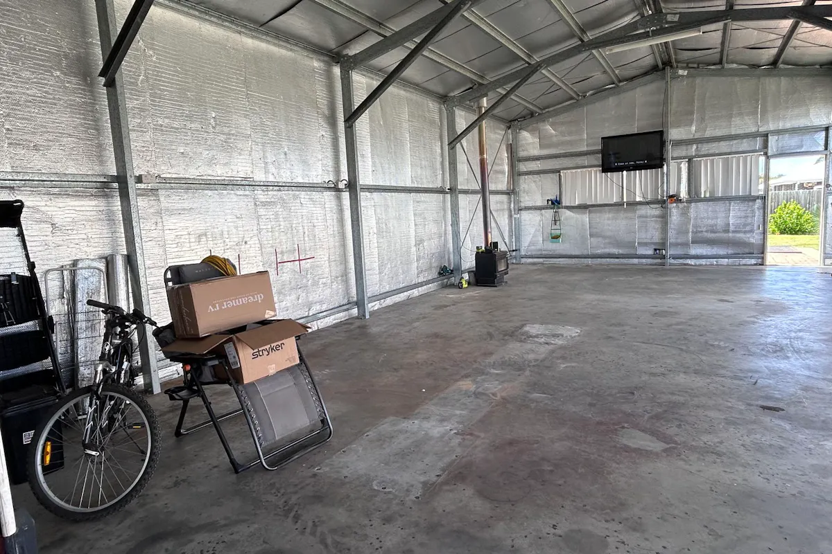 Outside, the property shines with a covered outdoor entertaining area with ceiling fan, overlooking established gardens. The huge 12.5m x 7m x 4.2m shed is fully insulated and fitted with a wood fire - ideal for projects, storage, or entertaining during cooler months.