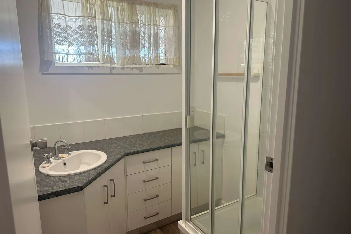 • Bathroom with shower and vanity